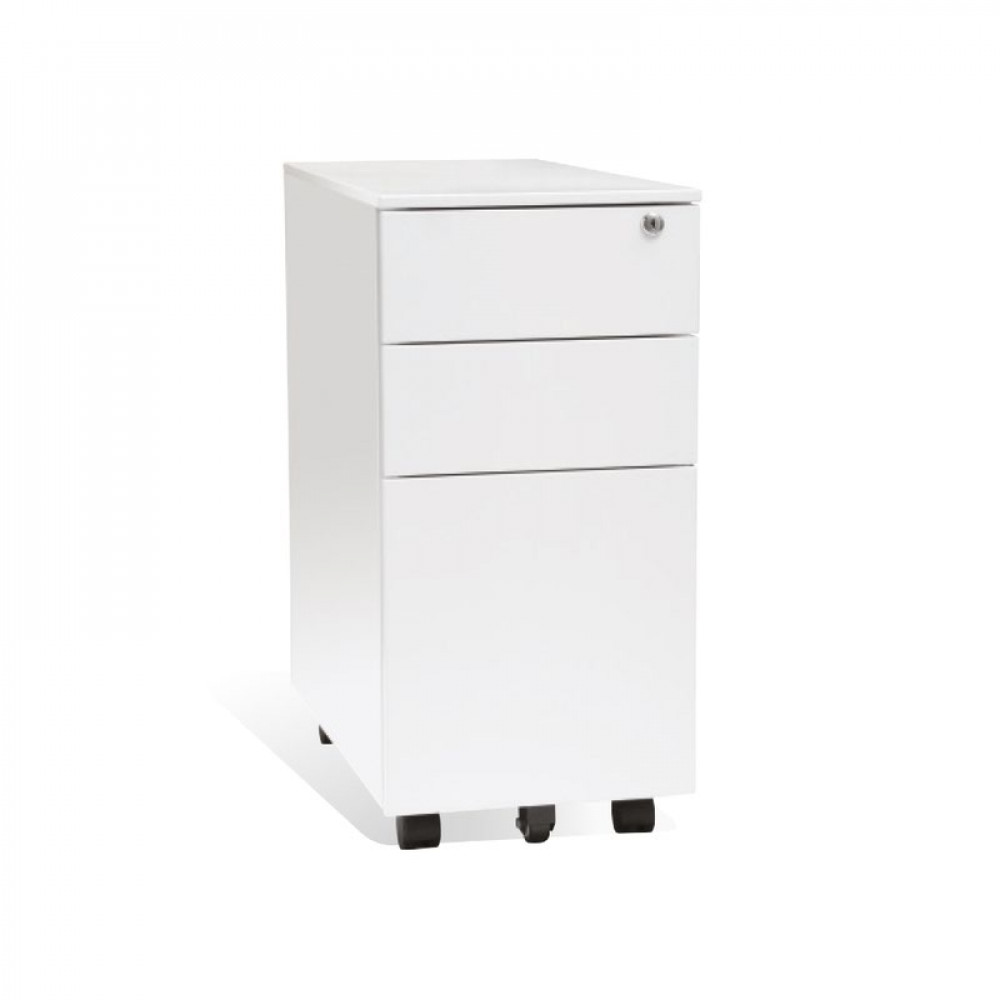 3 drawer mobile slimline steel pedestal. 300w x 500d x 600h. White.