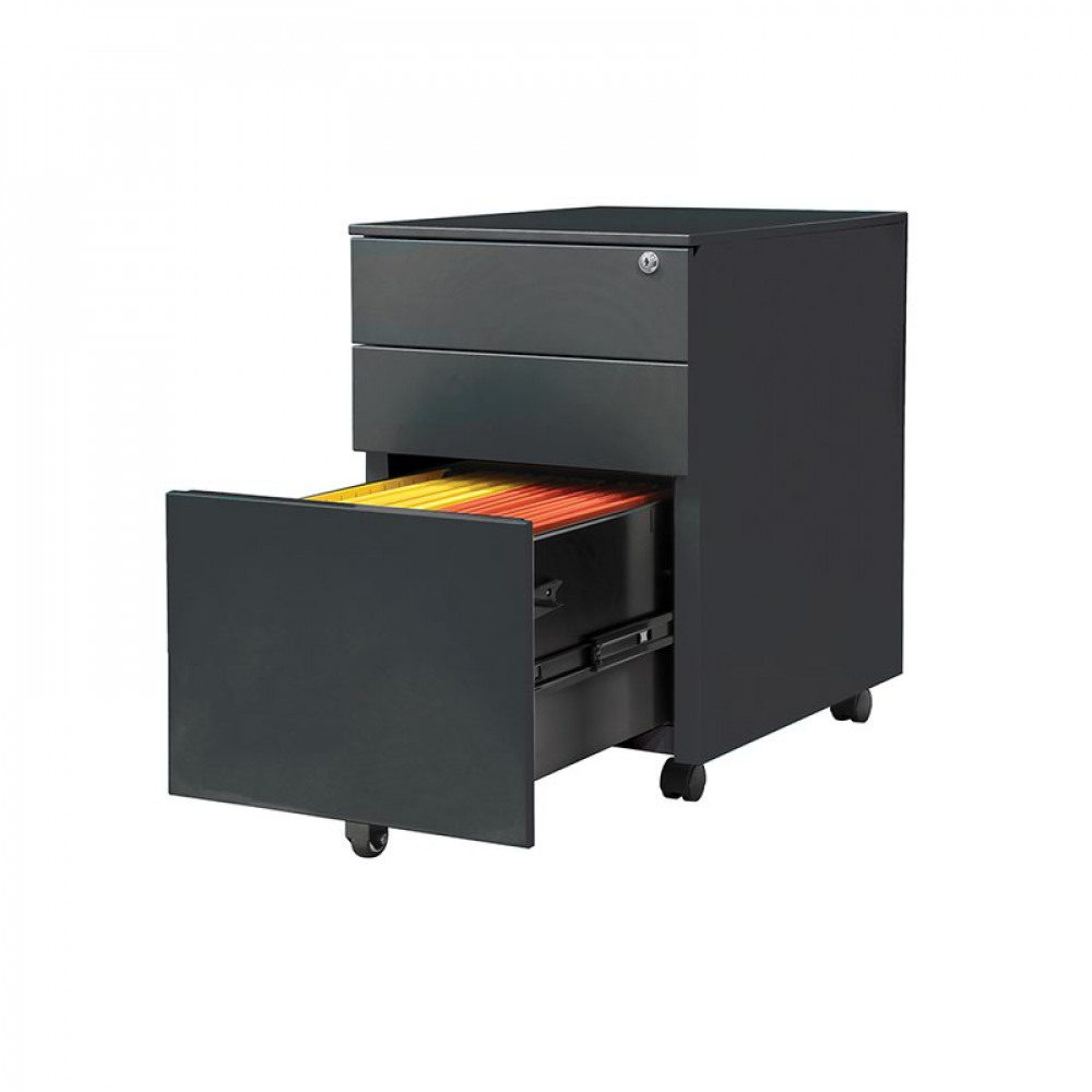 3 drawer mobile steel pedestal. 390w x 500d x 600h. Black.