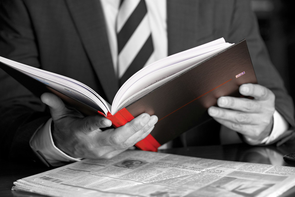 - Stylish red ribbon for page marking and referencing important notes