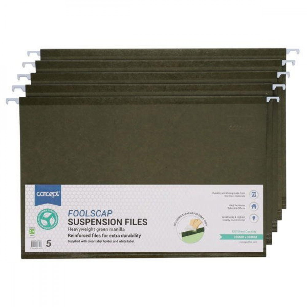 Concept Pkt.5 Foolscap Reinforced Suspension Files - Green