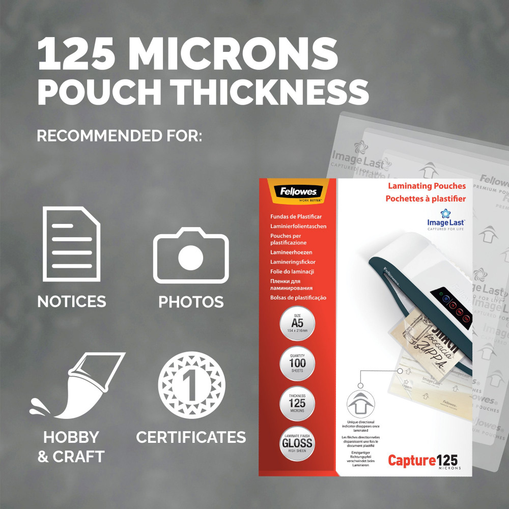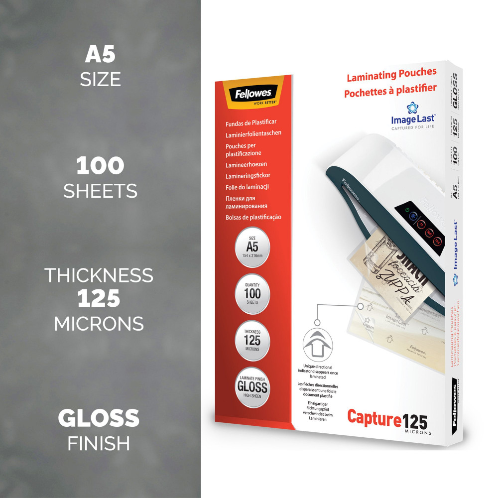 Fellowes ImageLast Laminating Pouch A5 250 Micron Total Thickness Gloss (Pack of 100) 5307302