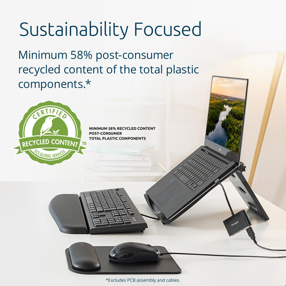 - Features a minimum 58% post-consumer recycled (PCR) content of the total plastic components. *Excludes PCB assembly and cables.