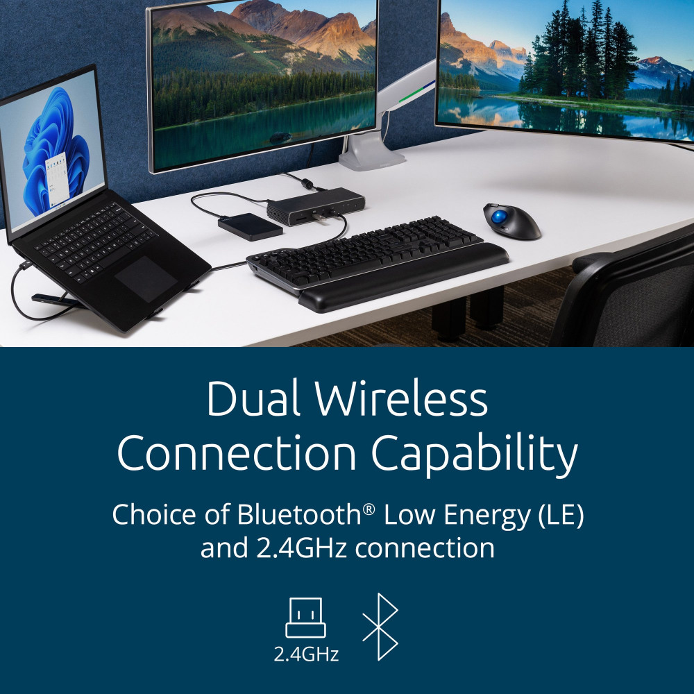 - Choice of Bluetooth® Low Energy (LE) and 2.4GHz wireless connection options (2.4GHz nano receiver included).