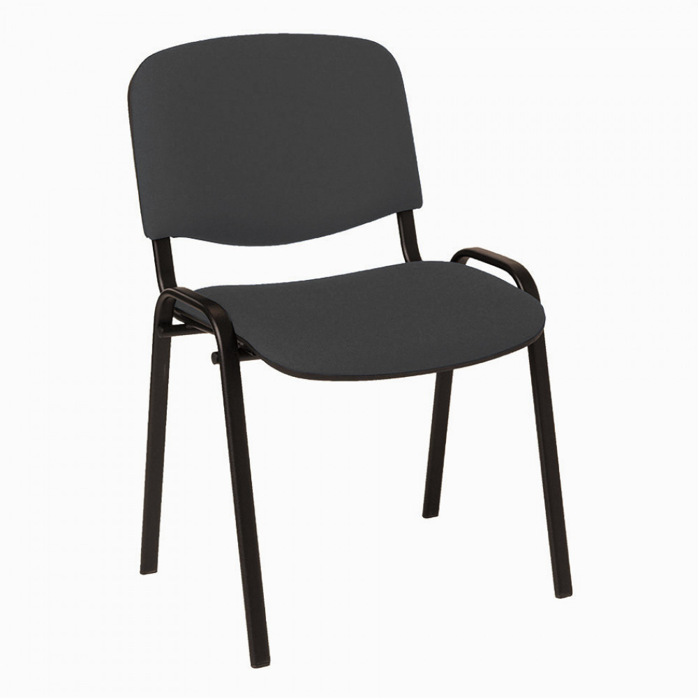 4 leg upholstered stacking side chair with black frame. Charcoal fabric.
