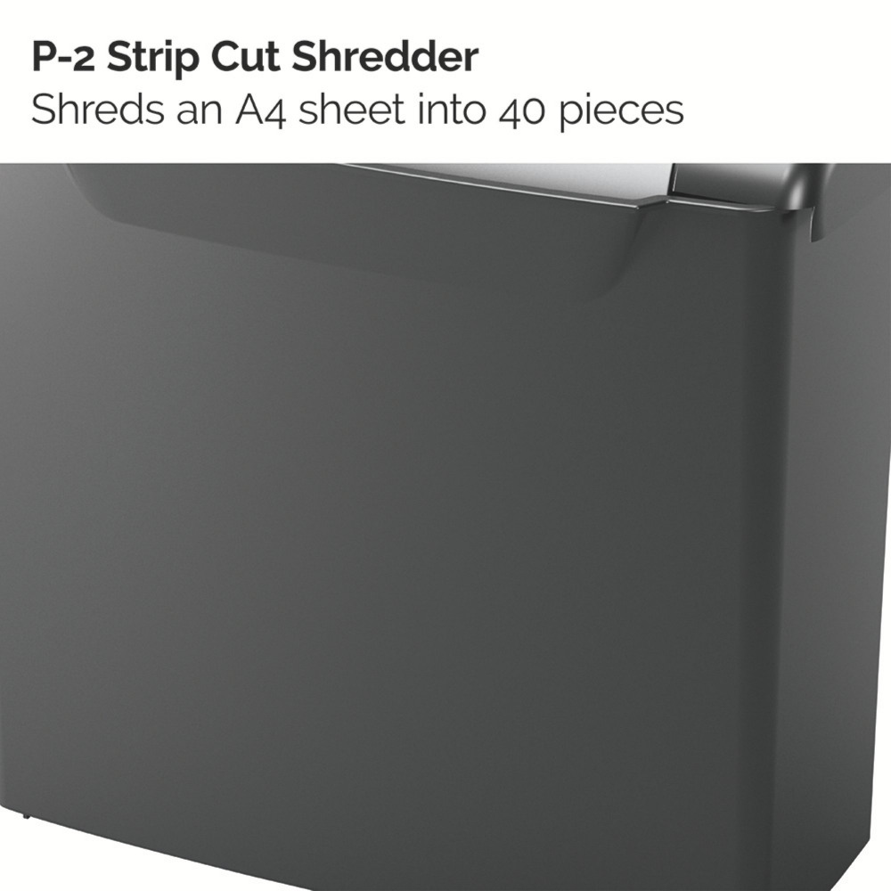 - Standard security level shredding with P2, Strip Cut 6mm pieces