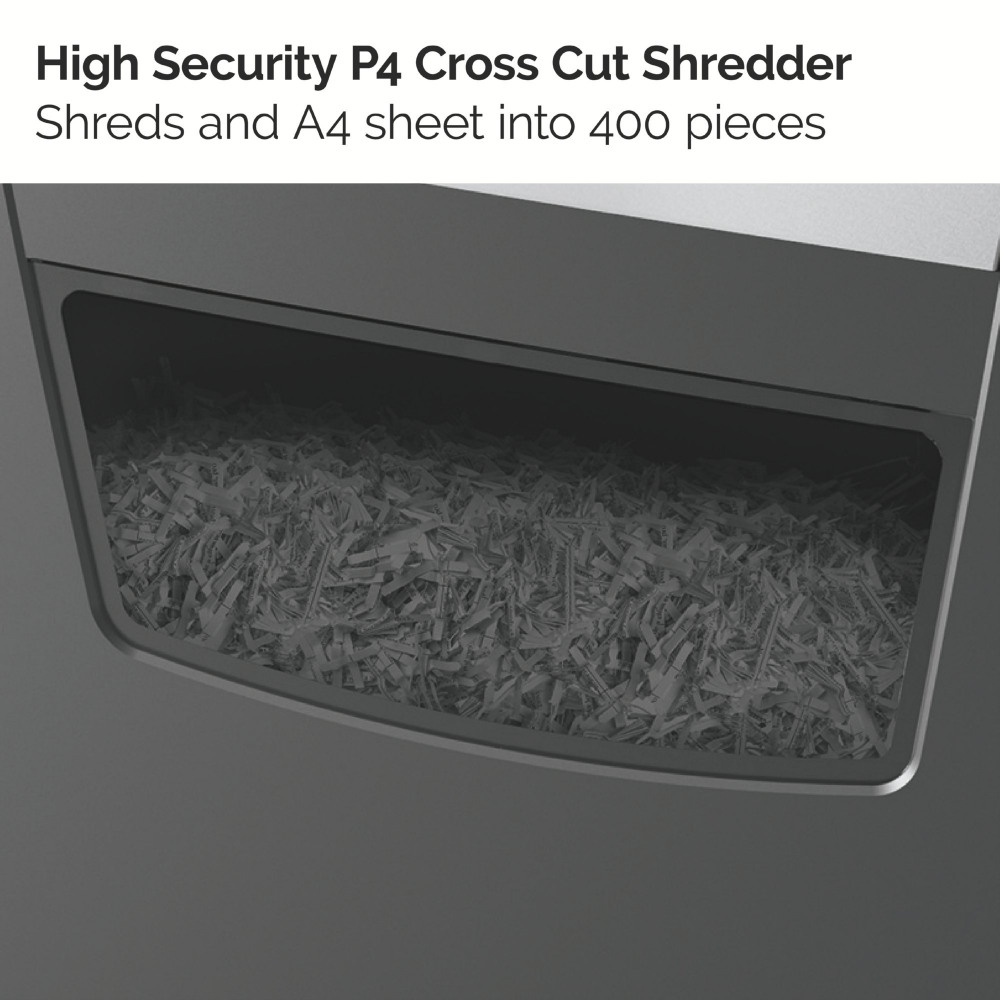 - High security level shredding with P4, Cross Cut 4x28mm pieces