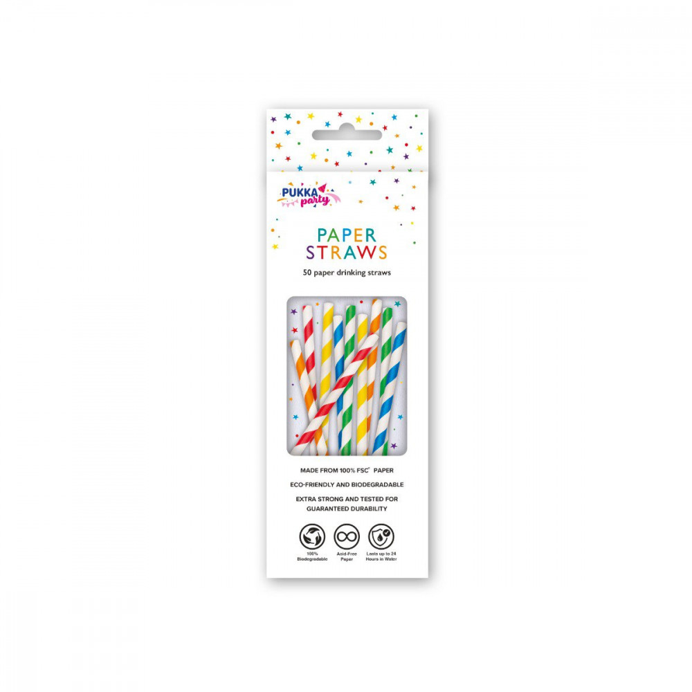 Pukka Party Striped Drinking Straws Assorted (Pack of 50) PTY578