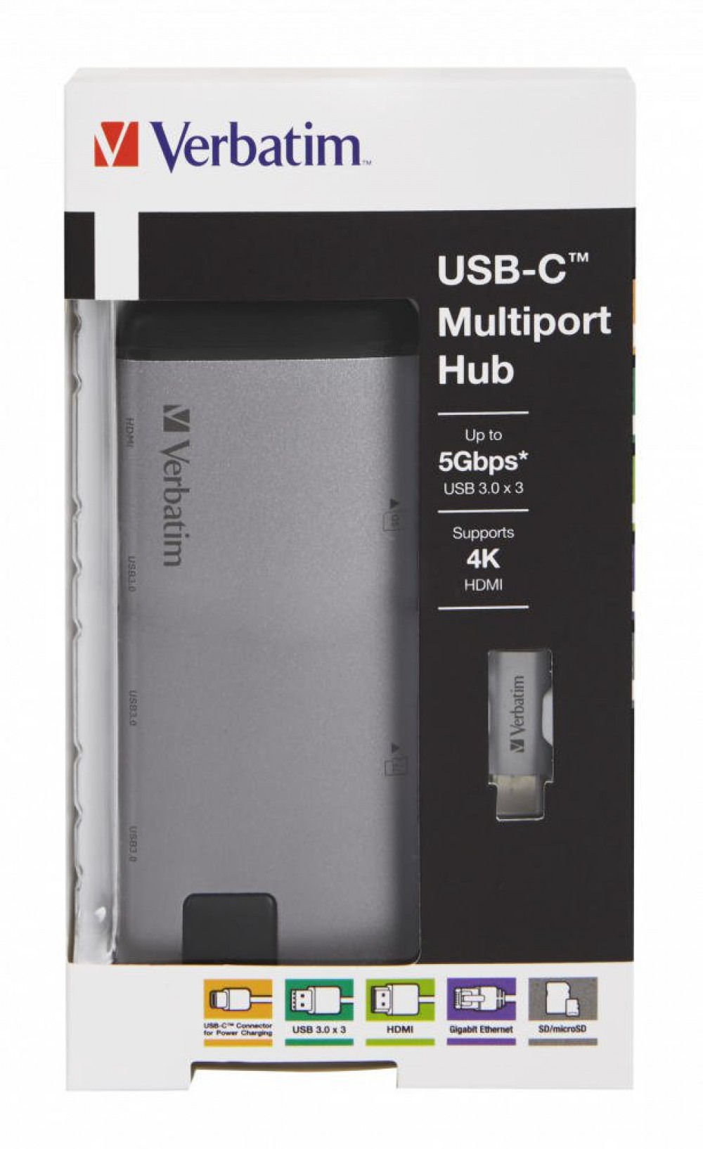 Verbatim USB-C Multiport Hub with USB/3 x HDMI/RJ45/SDHC/M-SDHC 49142